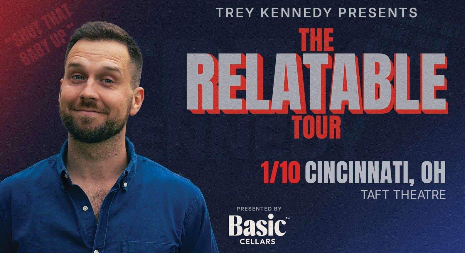 Cincinnati, OH (10/7/25) – Comedian and viral sensation Trey Kennedy has announced new 2026 dates for his nationwide run, The Relatable Tour. Following a year of highly successful shows across the U.S., Kennedy will extend his fan-favorite performance into next year, beginning February 15 in Durham, NC, and continuing through Cincinnati, OH at Taft Theatre on Saturday, January 10.